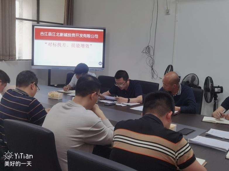 4 月 21 號(hào)下午, 江北公司組織各部門、 各下屬公司全體 員工召開 “對標(biāo)找差、 體能增效” 動(dòng)員會(huì), 會(huì)上陳磊傳達(dá)了 李仁軍書記在合江縣 “對標(biāo)找差、 提能增效” 活動(dòng)動(dòng)員會(huì)上 的講話精神。 以 “對標(biāo)找差、 提能增效” 為主題, 對標(biāo)先進(jìn), 找準(zhǔn)差距、比學(xué)趕超、提高績效。