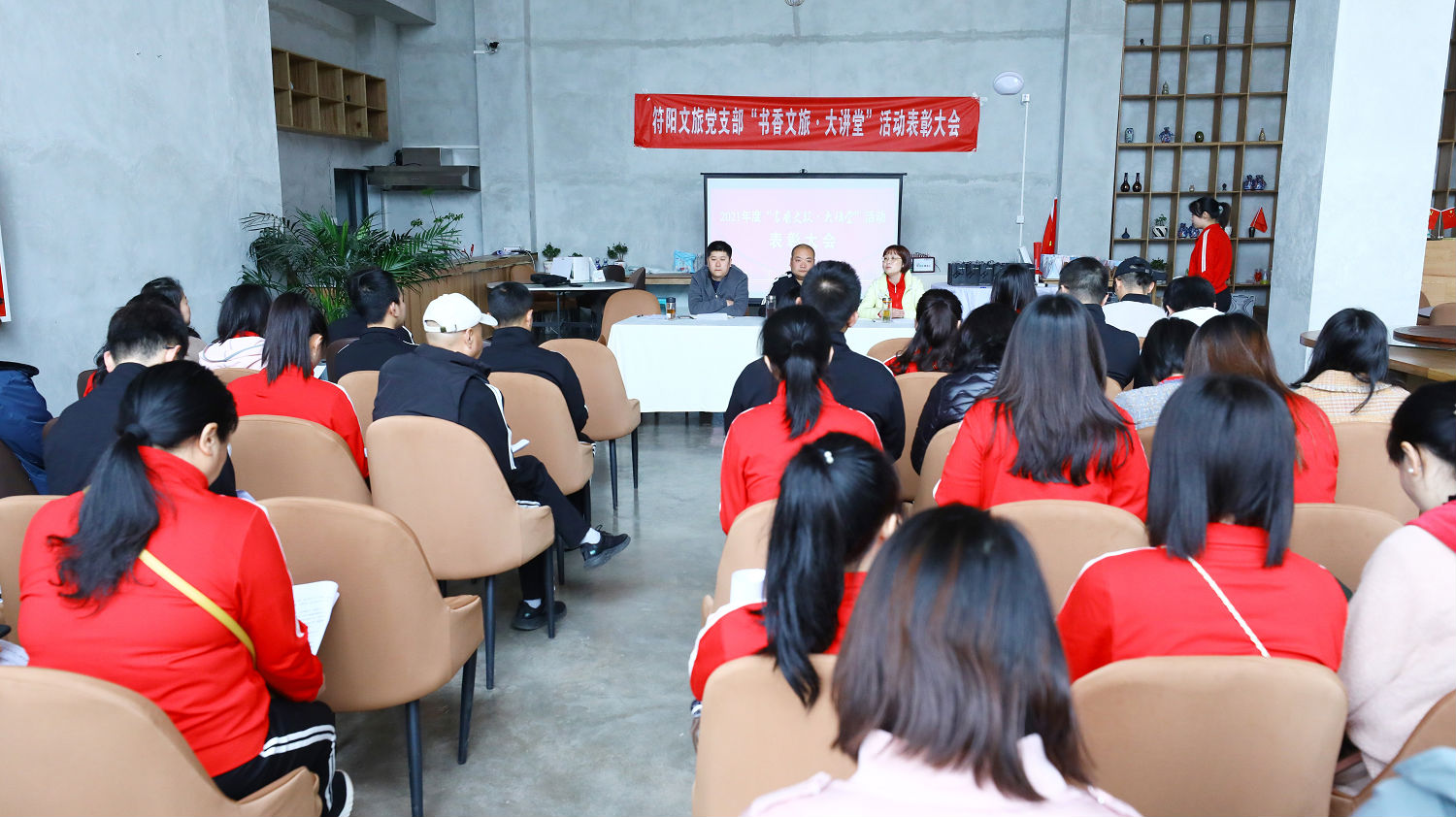 2022 年 3 月 23 日 上 午 , 符 陽 文 旅 黨 支 部 在 龍 掛 山 見 禧 山 語 召 開 2021 年 度 “ 書 香 文 旅 · 大 講 堂 ” 活 動 表 彰 大 會 , 會 上 支部書記譙棣升通報了活動開展情況, 同時進行了表彰獎勵, 并要求 2022 年再接再厲, 以更豐富的形式, 更精彩的內容, 在開放、 互動、 熱烈的課堂氣氛中獲取知識, 助推動公司高 質量發(fā)展。