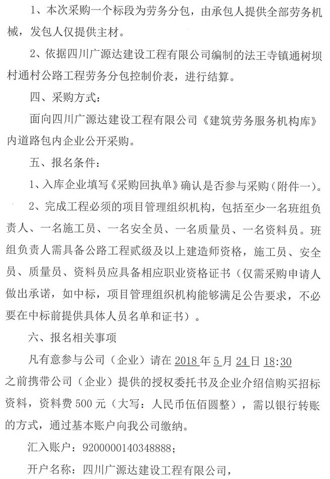 四川廣源達(dá)建設(shè)工程有限公司法王寺鎮(zhèn)通樹(shù)壩村通村公路工程勞務(wù)分包企業(yè)采購(gòu)公告.doc