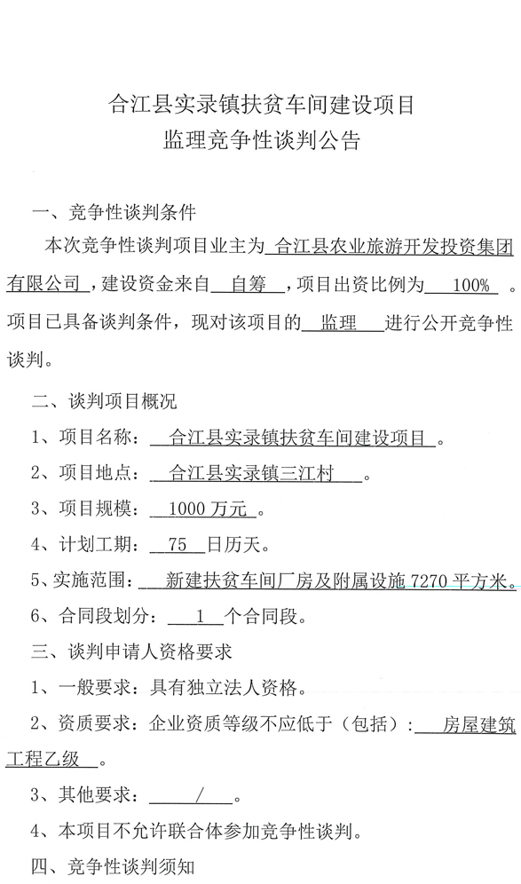 合江縣實(shí)錄鎮(zhèn)扶貧車間建設(shè)項(xiàng)目監(jiān)理競(jìng)爭(zhēng)性談判公告.docx